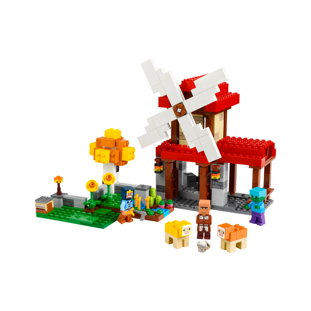Video-game building playset – The toy includes a buildable windmill and farm model, plus 2 LEGO Minecraft sheep, a zombie and Miller and Shepherd Villager figures