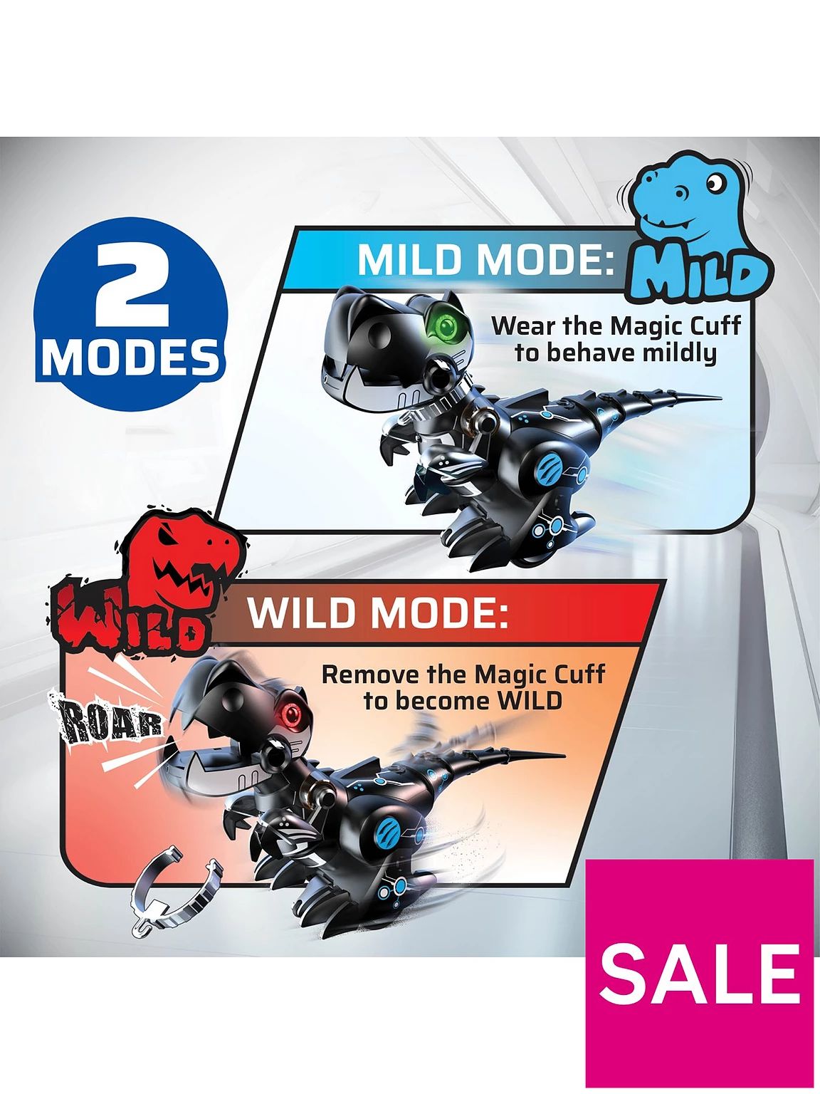 It is time to tame the naughty, wild and uncontrollable Train My Dino 2. Ready to learn this Dino will follow you like a pet, play with you and respond when you touch his head.Switching between two modes of play when the intelligent sensor is activated, the Train My Dinos mood will change in an instant.Wild mode: Dino will chase and roar causing havoc to anything that comes across its path.Mild mode: Wearing its magic cuff the Dino will relax and follow your lead.Use the remote to control the Dino will move and follow you or activate gesture control and watch as it chases you!Suitable for 5+ years.