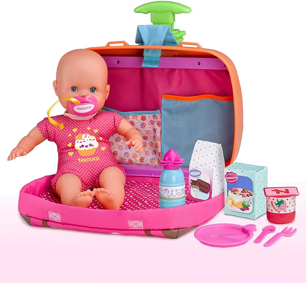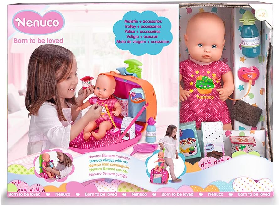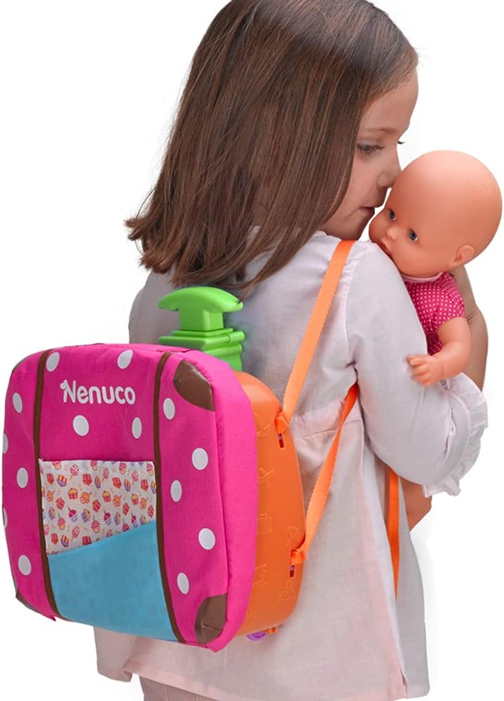 The suitcase for things is multifunctional. It can be carried in the hands and as a backpack, carried by the handle, and even attached to the car seat using special straps.The straps also allow you to secure the sitting doll to the suitcase.The suitcase handle is retractable.The doll has a soft body, arms to the shoulder and legs from the thigh are made of soft plastic.A cookie, bottle, pacifier and other accessories come in handy to take care of the doll.Content: Baby doll (35 cm), Suitcase, Bobblehead, Accessories.Doll height: 42 cm.Age: 3 years+.Barcode: 8410779041319