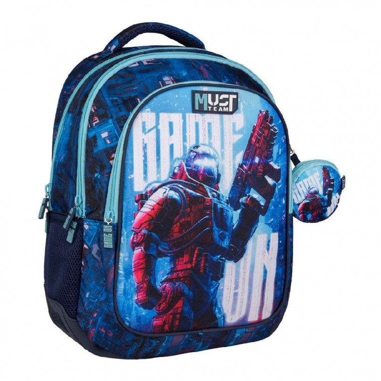 Elementary school backpack Must Team with 3 cases is the ideal choice for every student who wants to combine style and comfort at school! Practical and durable elementary school bag with ergonomic design for safe, comfortable and easy transport of all necessary school supplies to school. A special primary school backpack with design, that will delight!
