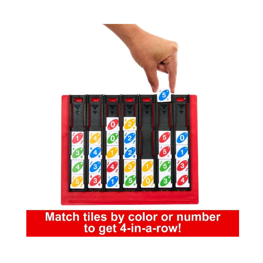 Combines the skill of matching color and number with the challenge of getting four-in-a-row